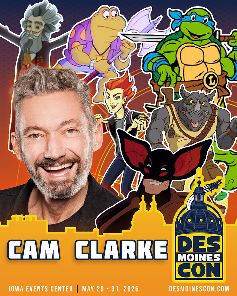 Cam Clarke is a voice actor who is known for voicing Leonardo and Rocksteady from the 1987 Teenage Mutant Ninja Turtles cartoon, Shotaro Kaneda from Akira, Freddy from the Barnyard franchise, Liquid Snake from Metal Gear Solid, Clay Kaczmarek from Assassin’s Creed II and Simba from The Lion King franchise whenever Matthew Broderick is unavailable.
